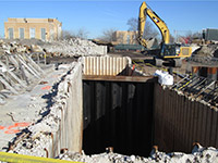 April 2014 - Contractor breaks up concrete slab prior to excavation along Kellogg St.